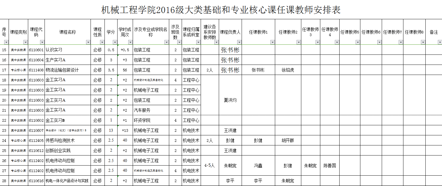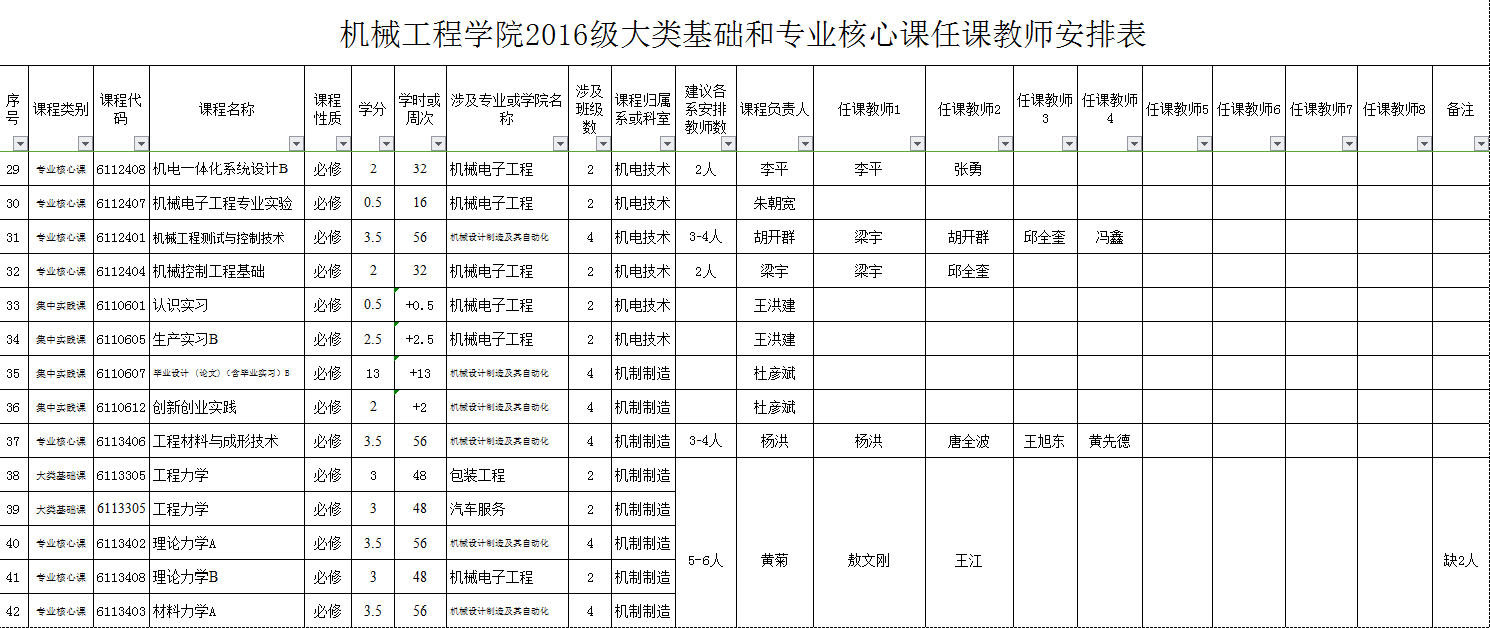 1、鉴于2016级人才培养方案有了新的较大的调整,为实施好相关人才培养计划,通过公司教学指导委员会讨论,并经公司信息会研究,对2016级人才培养方案涉及的大类基础课程及专业核心课程等的教学任务进行了重新安排(具体方案见sunbet申搏关于教学大纲等修订(编写)的实施方案,机院【2016】第16号)。具体教学任务安排表见附件,各系原则上应按此表落实具体教学任务,请各位教师提前做好有关教学准备。