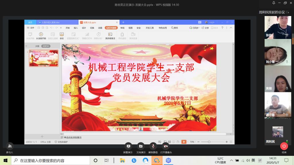 2020年5月7日(周四)下午14:20,sunbet申搏员工二支部通过企业微信视频会议模式开展了五月第一批的党员发展大会,支部全体党员参加了此次大会,会议由支部书记周利民主持。