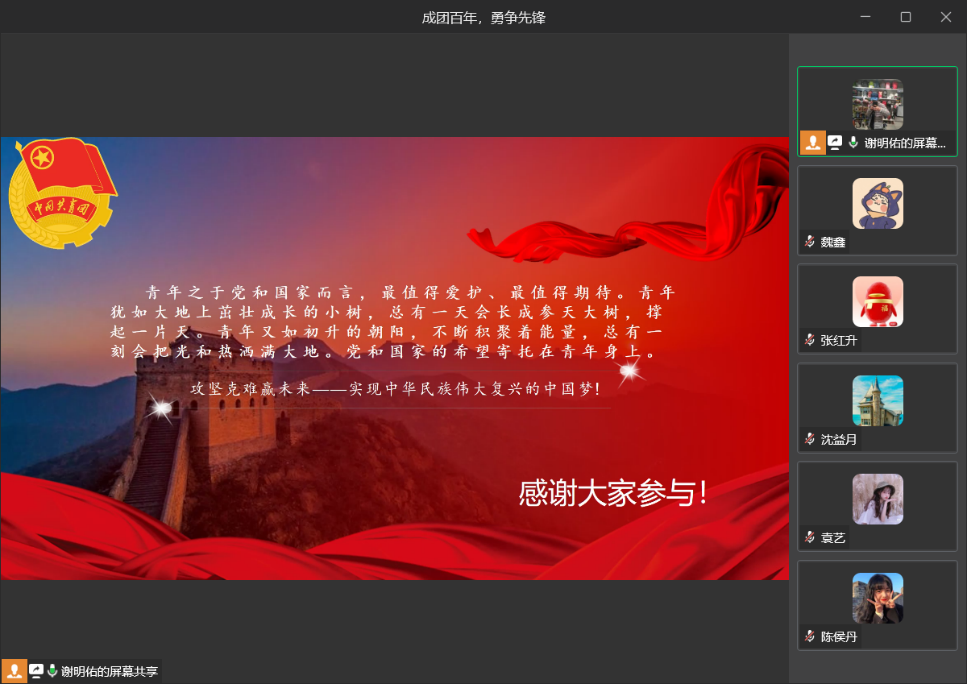 5月20日晚上7点,sunbet申搏员工党服工作站携手员工党支部,采用线上观影交流学习的方式,学习习近平总书记在庆祝中国共产主义青年团成立100周年大会上的重要讲话精神。公司陈春洁副书记带领与会入党积极分子和师生党员话心得、谈感想,切实让习总书记重要讲话精神入脑、入心。本次活动机械工程公司党服工作站130余名同学参加了会议。