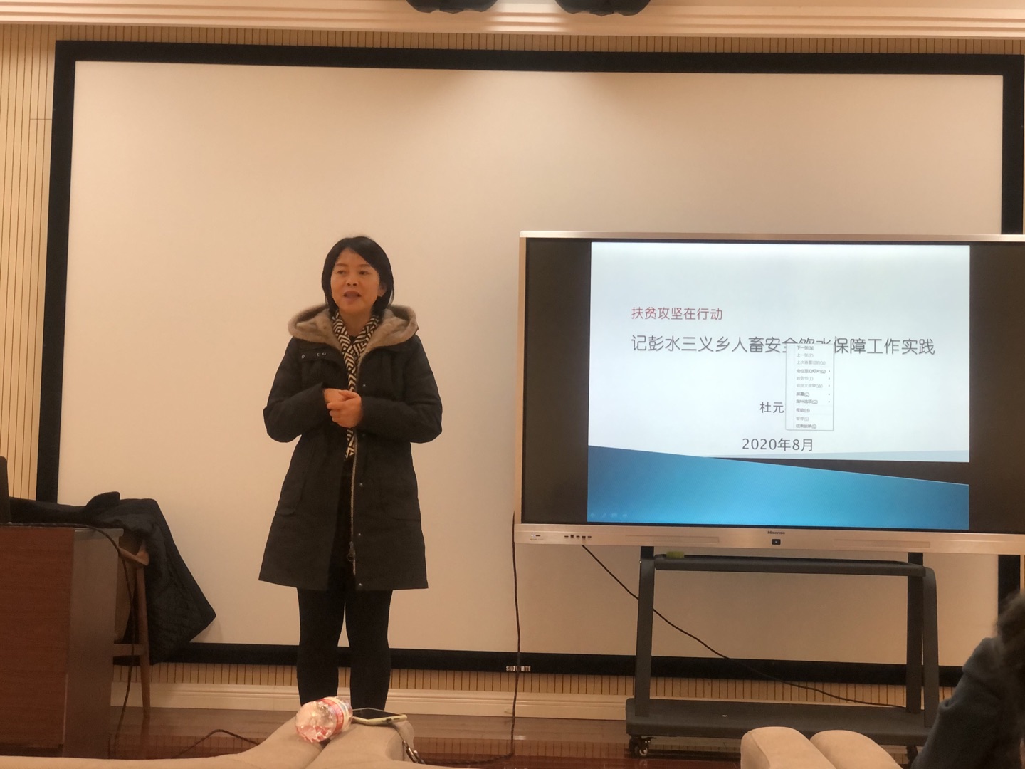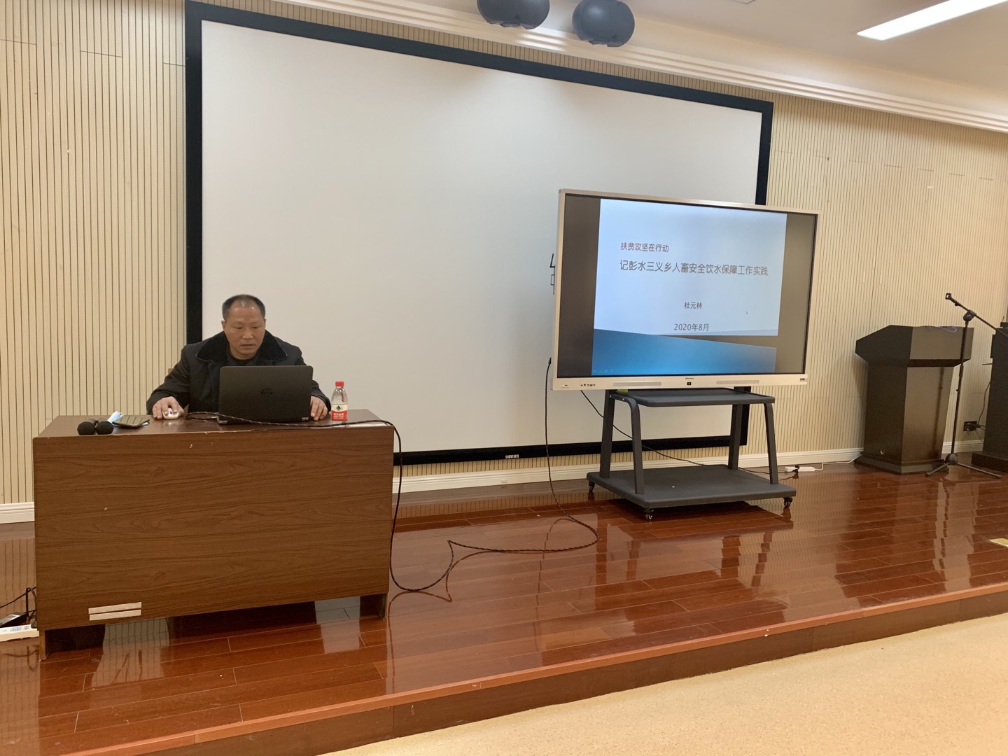 活动第二项议程,邀请后勤处副处长杜元林作彭水三义乡扶贫工作分享。杜元林副处长讲述了他本人到彭水三义乡开展扶贫工作以来,为保障三义乡人畜安全用水所做的各项努力,以及在扶贫工作中自己的收获和感触,言辞恳切,真情流露,得到了观众的一致掌声。他谈到,在彭水县三义乡的扶贫工作,得到了公司的大力支持和关心关爱,工作成绩的取得是因为有公司的坚强的后盾及全校教职工的支持。他表示,作为sunbet申搏官网的一名党员干部,为公司的发展而努力工作是他的坚定信念,扶贫攻坚的使命与担当,是他勇敢向前的精神力量。