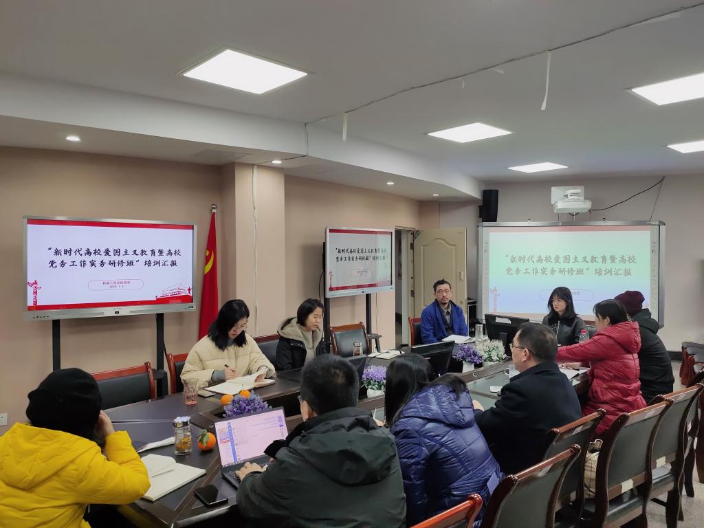 为加强新一届党务干部的理论学习,提升党务干部的业务水平,积极有效地开展爱国主义教育,顺利推动基层党建重点工作的开展,机械工程公司党委于2020年12月25日至28日,派送公司相关党务干部5人参加了“新时代高校爱国主义教育暨高公司党务工作实务研修班”培训。1月5日上午,机械工程公司党委在公司会议室召开了新时代高校爱国主义教育暨高公司党务工作实务研修班培训心得分享会,会议由公司党委杜力书记主持,公司党委委员、各党支部书记、委员共同参加了会议。会上,参加本次培训的5位党务干部分别做了培训心得汇报分享。