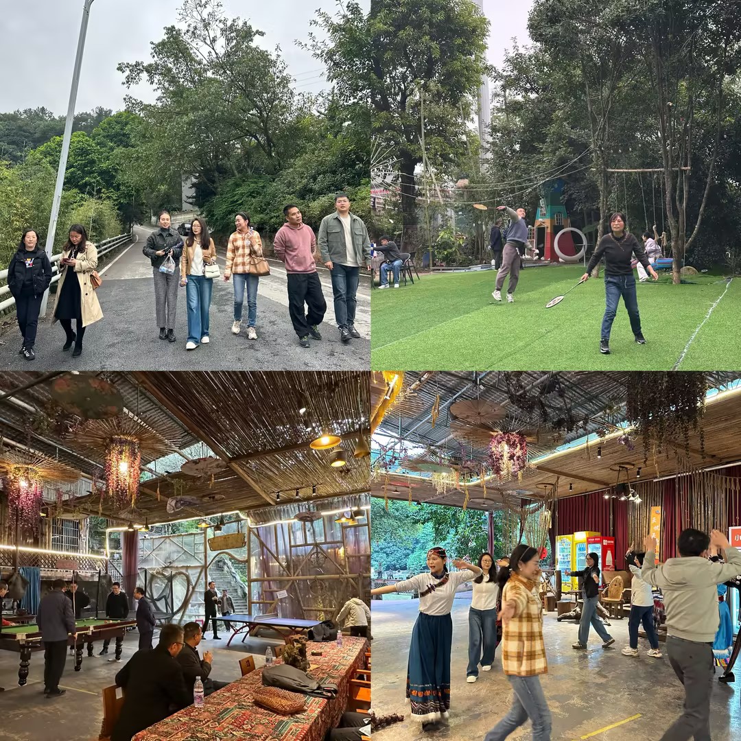活动现场,气氛热烈,欢声笑语不绝于耳。有的老师沿着山间步道漫步,欣赏斑斓秋色;有的老师在运动场地切磋技艺,羽毛球和乒乓球划出的弧线展现了教师课堂外的矫健与朝气;有的老师伴着动感音乐跳起摆手舞,轻松的步伐、愉悦的笑容,瞬间拉进彼此距离,活动现场其乐融融。