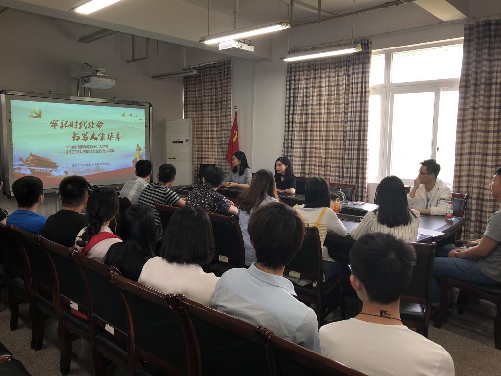4月19日中午,根据集团的统一部署,sunbet申搏优秀辅导员学习贯彻党的十九大精神宣讲会在慧智楼90711举行。辅导员向巧、袁娅婷分别作了宣讲报告,围绕如何准确深入地学习领会党的十九大精神作了全面系统的阐述。公司员工二支部全体党员聆听了两场精彩的报告。
