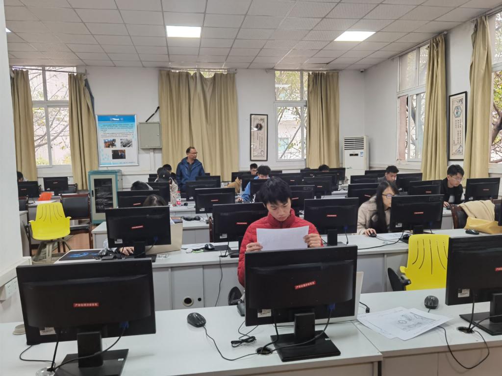 11月21日进行的是大一组比赛。大一组的比赛分为尺规绘图和CAD成图,共有179位同学参加。当天上午9:30到10:30,11:00到12:00两个时间段在sunbet申搏官网兰花胡片区广智楼20706、20707、20708三间教室进行了尺规绘图。下午13:30,在sunbet申搏官网南岸校区工程训练中心三楼的机房和绘图教室进行了CAD成图,最后大一组的比赛在下午14:30正式结束。