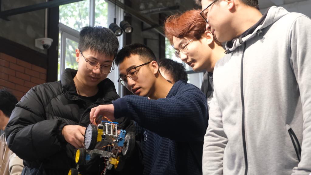 准备阶段,各个队伍都在不断调试着自己的小车,敲击着电脑上的键盘,显示屏上那一行行的代码不断变化着。他们在不断的讨论着,一遍又一遍的尝试着,为的就是能够在赛场上发挥出自己的最好水平。每位同学都在激烈讨论,如何提升自己小车的速度与稳定性。同时,位于场边的指导老师也对他们耐心教导,指出了每一组参赛队伍的问题,希望他们的成绩能够发挥得更好。