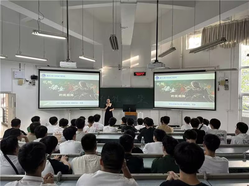 刘静老师首先为新生们勾勒出一幅清晰的“取经地图”。她系统地梳理了大学四年不同阶段的任务与目标,并重点介绍了多位机械领域知名员工的发展道路。从扎根基层的技术骨干,到引领行业的领军人物,再到投身创业的开拓者,这些鲜活的榜样故事,让新生们看到了未来的无限可能,深刻理解了个人发展与国家需求紧密结合的价值与意义。