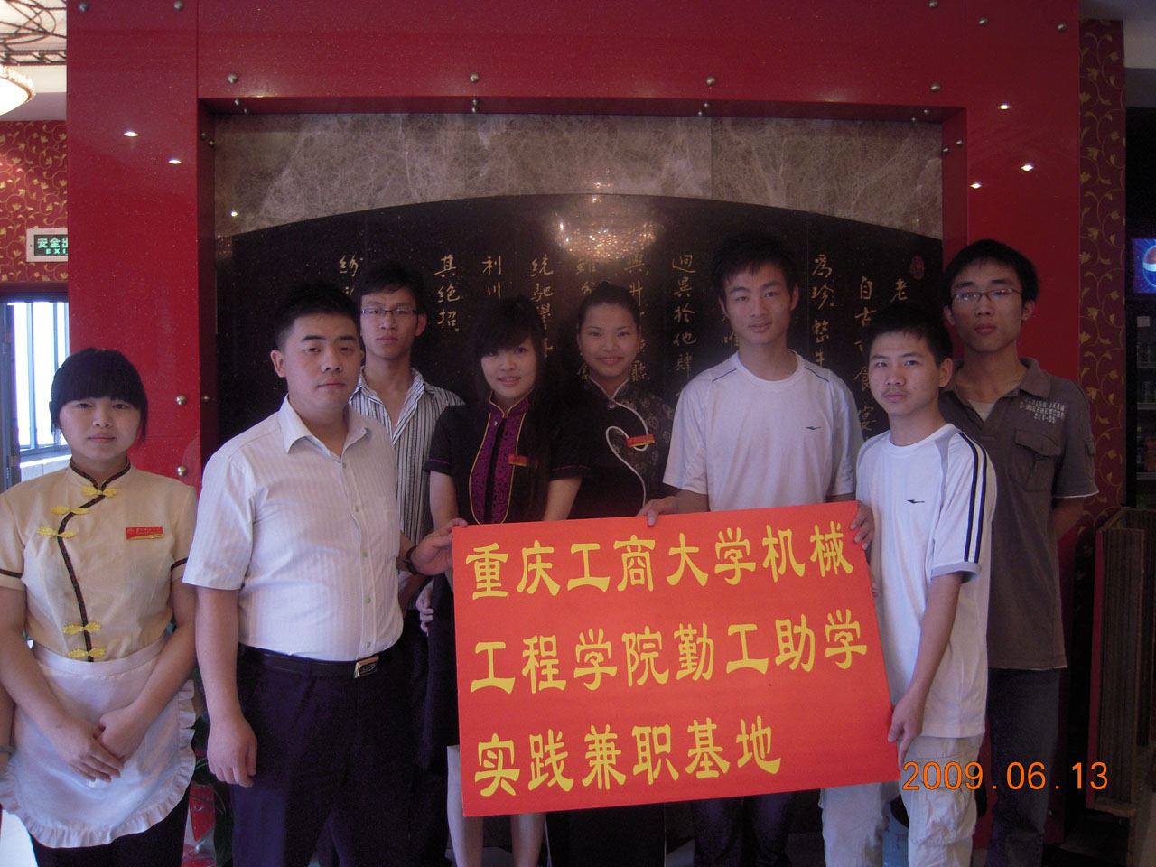 为了给同学们提供更多的实践兼职机会,sunbet申搏勤工助学中心不断开拓新的道路。经过积极的联系和沟通,2009年6月13日上午,我中心与渔洞老四川大酒楼举行了隆重的挂牌仪式,这标志着公司勤工助学中心自谋的第一个实践兼职基地正式成立。