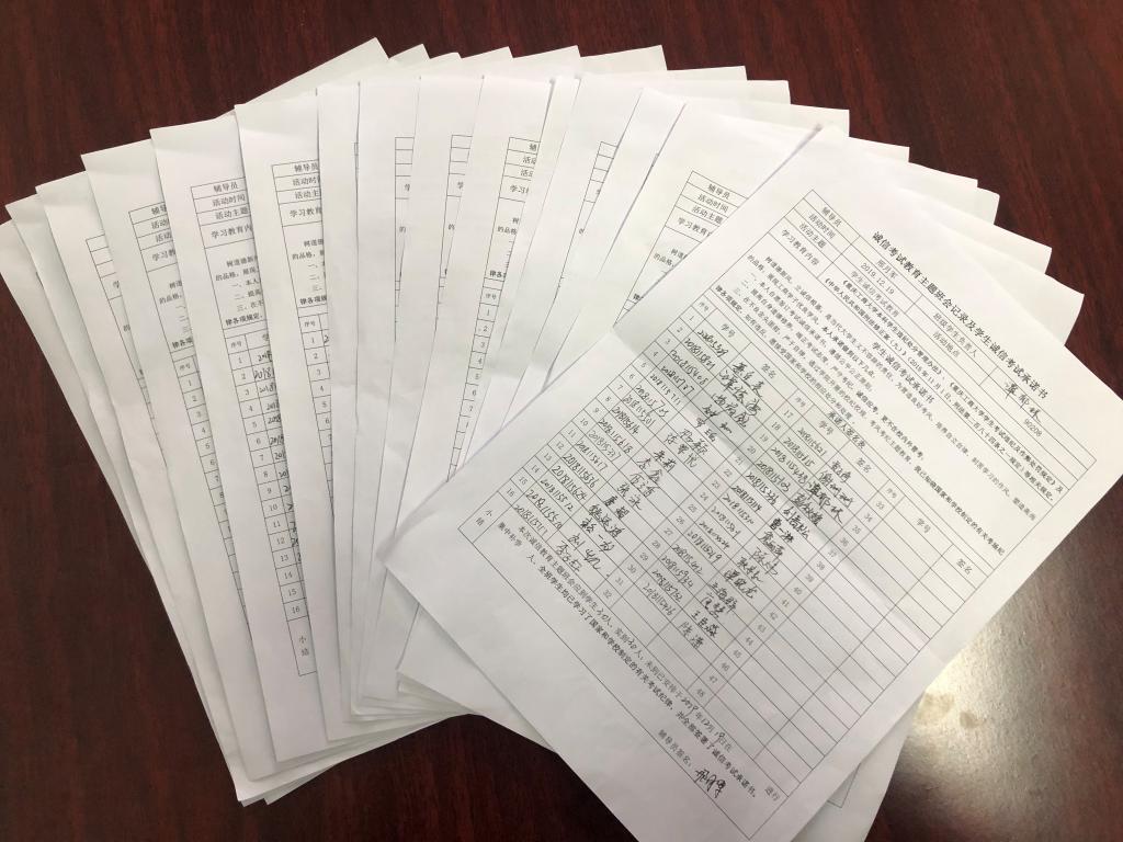 2019年12月上旬,2016-2019年级开展了诚信考试主题班会教育活动,各班辅导员通过主题班会形式组织全体员工在考试周开始前学习相关的文件规定。学习内容包括《国家教育考试违规处理办法》、《sunbet申搏官网本科员工违纪处分管理办法》、《sunbet申搏官网员工考试违纪及作弊处罚规定》及《中华人民共和国刑法修正案(九)》(2015年11月1日,刑法第二百八十四条之一规定)等相关规定。在完成主题学习之后,各班员工签订了《员工诚信考试承诺书》,承诺考试遵循公平公正原则,端正考试态度,严守考纪,诚信应考,更不在校内外替考,在不良念头面前,严于自律。