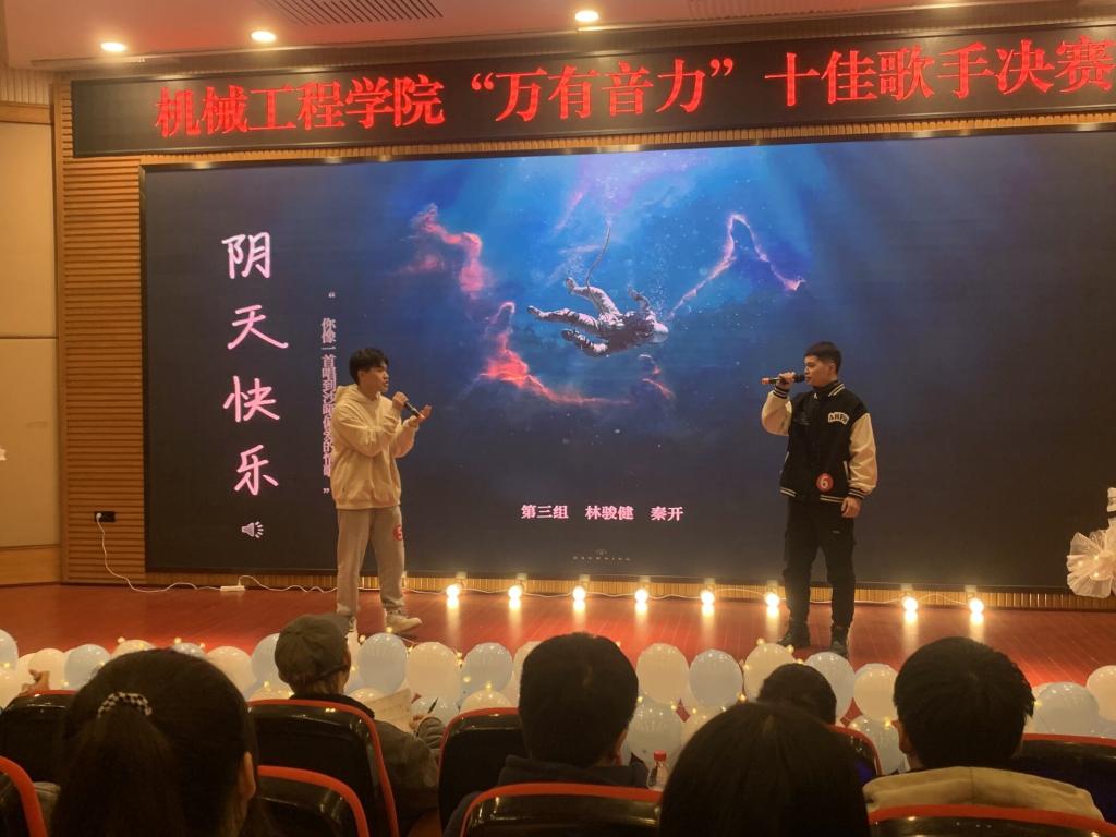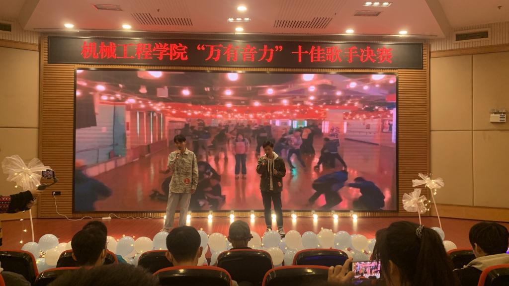 本次比赛旨在加强公司文化建设,提高同学们的艺术素养,进一步丰富公司师生文化生活,营造积极向上、健康文明的第二课堂氛围,同时给同学们提供一个锻炼自己的机会和展示自己的舞台。本次比赛总共分为两轮竞演。第一轮根据赛前抽签组队,十六名选手两两组队分为八组,每组合作演唱同一首歌曲,每组演唱完毕后评委打分,八组演唱完毕后按照总分高低排名产出十名选手进入第二轮十佳竞演组,排名11至13名选手进入挑战组。竞演在主持人慷慨激昂的致辞中正式开始。虽然选手来自不同的班级,水平也各有千秋,但在这一轮中,每组选手都表现出了最佳的默契与配合。《匆匆那年》带我们回到了最纯真朴素的校园生活;《阴天快乐》让我们增添了一份属于寒冬的喜悦与温暖;《圣诞结》又给我们勾勒出了一幅其乐融融、浪漫唯美的平安夜。选手们的歌声有时动人,像潺潺流水般浅吟低唱,独具风韵;有时低沉,若露滴竹叶般玲玲作响,耐人寻味;有时浑厚,如雄鹰展翅时的长鸣,振聋发聩;有时婉转,似情谊深厚的热泪,洗涤心灵。