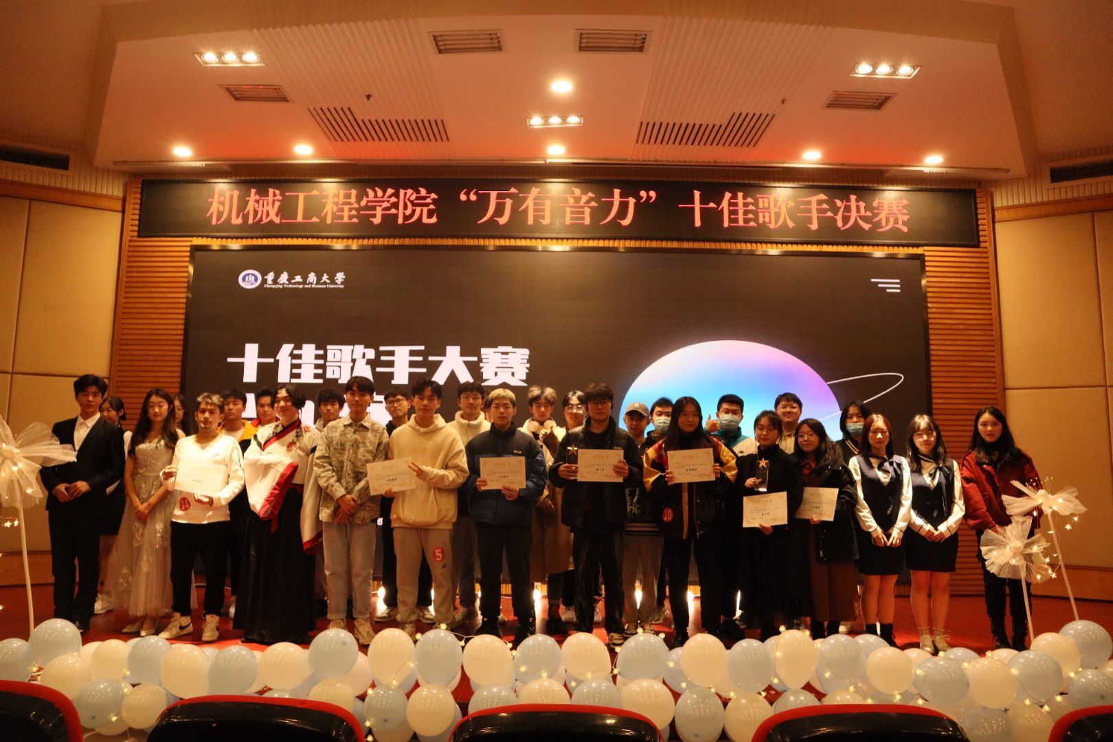随后,校十佳歌手周礼洁同学与天木槿音乐社社长王子叶同学作为本场比赛的特邀嘉宾,也为观众们献上了两首动听的歌曲。悠扬的歌声,优美的旋律,赢得了在场观众的阵阵喝彩与掌声。嘉宾献唱结束后,第二轮竞演正式开始。秦开同学演唱的《背对背拥抱》,声情并茂感人肺腑;王柯淞同学的《当你老了》,余音绕梁洋洋益耳。选手们各自大显神通,有的歌声婉转动人,如山涧中的潺潺流水;有的歌声激情澎湃,如大海上的滚滚浪花;有的歌声深沉忧郁,如瓷杯里的醇厚浓茶。经过评委严谨而细致的打分,20级智能制造一班的张凯杰同学、19级智能网联汽车班的秦开同学和21级智能车辆工程一班的付嘉乐同学分别斩获了此次十佳决赛的冠亚季军。