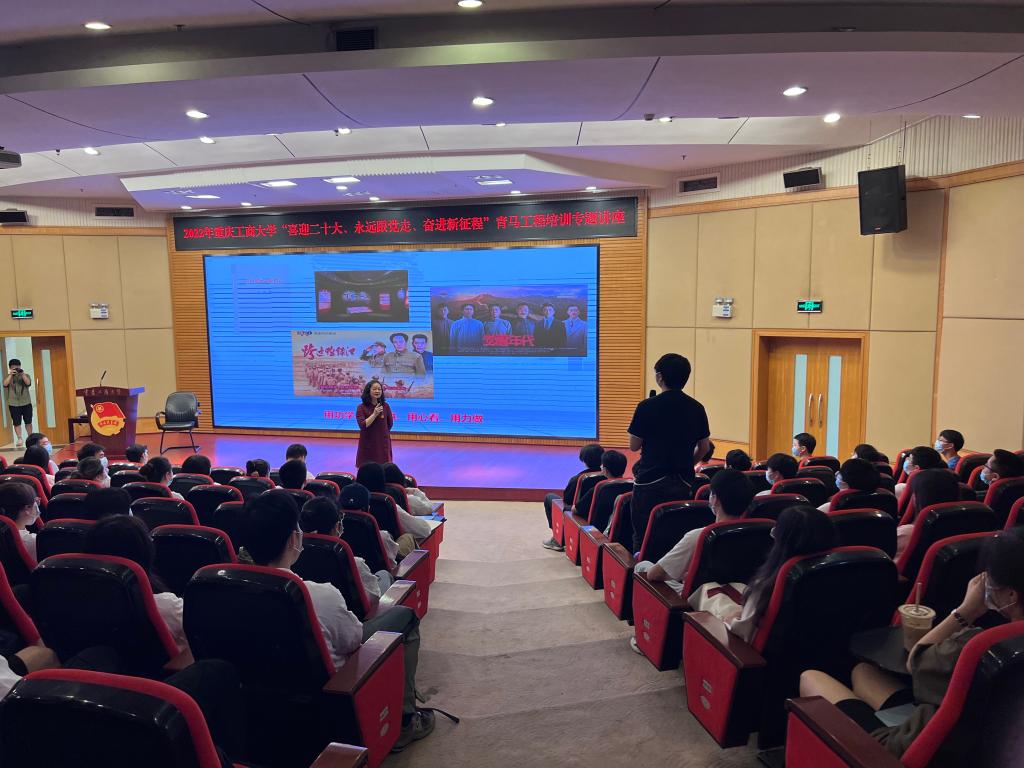 为迎接党的二十大胜利召开,引导广大青年团员深入学习贯彻习近平新时代中国特色社会主义思想,培养信仰坚定、能力突出、素质优秀、作风过硬的团学骨干,4月22日下午,校团委在博智楼7200报告厅启动“喜迎二十大、永远跟党走、奋进新征程”青马工程培训。共青团重庆市委副书记黄永宜作了题为《深学笃用习近平总书记关于青年工作的重要思想做有志气、有骨气、有底气的新时代青年》的专题讲授。sunbet申搏19级包装一支部全体团员参与活动。