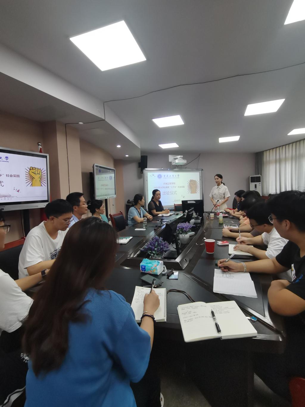 学工办主任刘静作为带队老师介绍暑期社会实践整体情况,她从“一纵一横”两个方面介绍了2022年公司社会实践工作整体安排,并就公司分团委在思想下乡、科技下乡、教育下乡三方面的工作任务做了详尽的介绍。