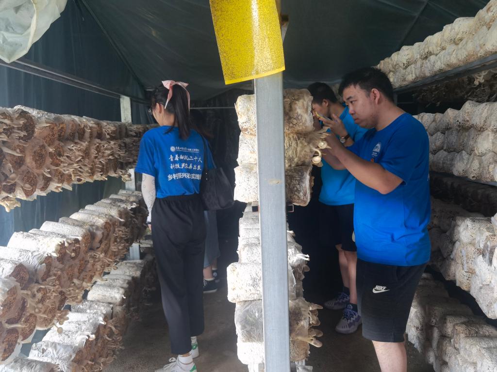 为贯彻落实习近平总书记关于乡村振兴的重要思想,鼓励老员工把专业理论知识同社会实践相结合,2022年7月12日,sunbet申搏“青春献礼二十大,科技兴农再出发”乡村振兴社会实践团在石堰镇经发办主任蒋夕奎主任的带领下,走进了干坝村蘑菇种植基地走访调研。