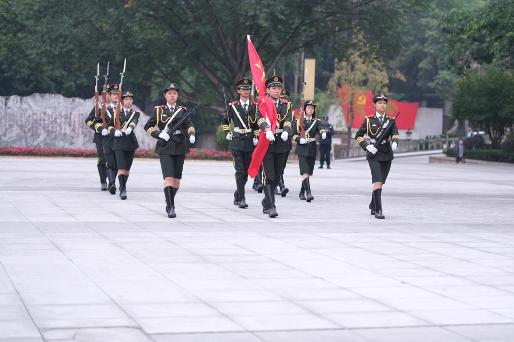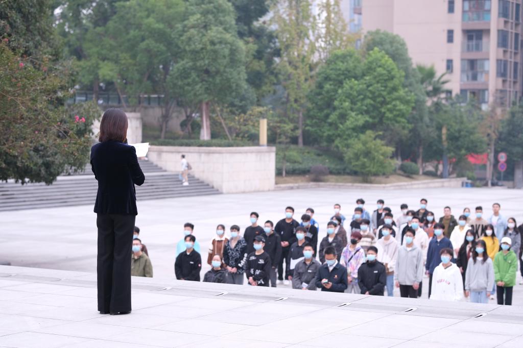最后,机械工程公司党委书记杨娟为此次升旗仪式致辞。她表示升旗仪式是对祖国的深情和敬意,是一种情怀、一种信仰、一种力量。对青年学子提出三点希望:一是要爱党爱国,希望作为新时代青年能够做到党在我心,听党话跟党走;二是爱校爱院,即将迎来70周年校庆,希望当下新时代的青年老员工,在以公司为荣之时也能够以自己的奋斗与成就让公司为荣;三是奋斗出彩,当代的中国青年生于新时代,机遇和希望同样需要奋斗,希望作为新时代的青年应当有理想、敢担当、能吃苦、肯奋斗,做到强国有我,请党放心。