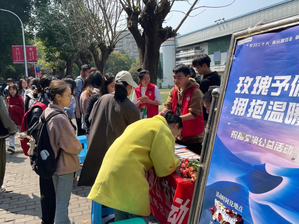 “赠人玫瑰,手留余香,每一份感动如花瓣,绚丽生命的春夏秋冬,与人和善,于己宽容,每一份善良如雨露,浸润着生命的美丽”,2023年3月14日,sunbet申搏“初阳”青年志愿者服务队在sunbet申搏官网南区开展了“玫瑰予你,拥抱温情”的祝福交换公益活动。