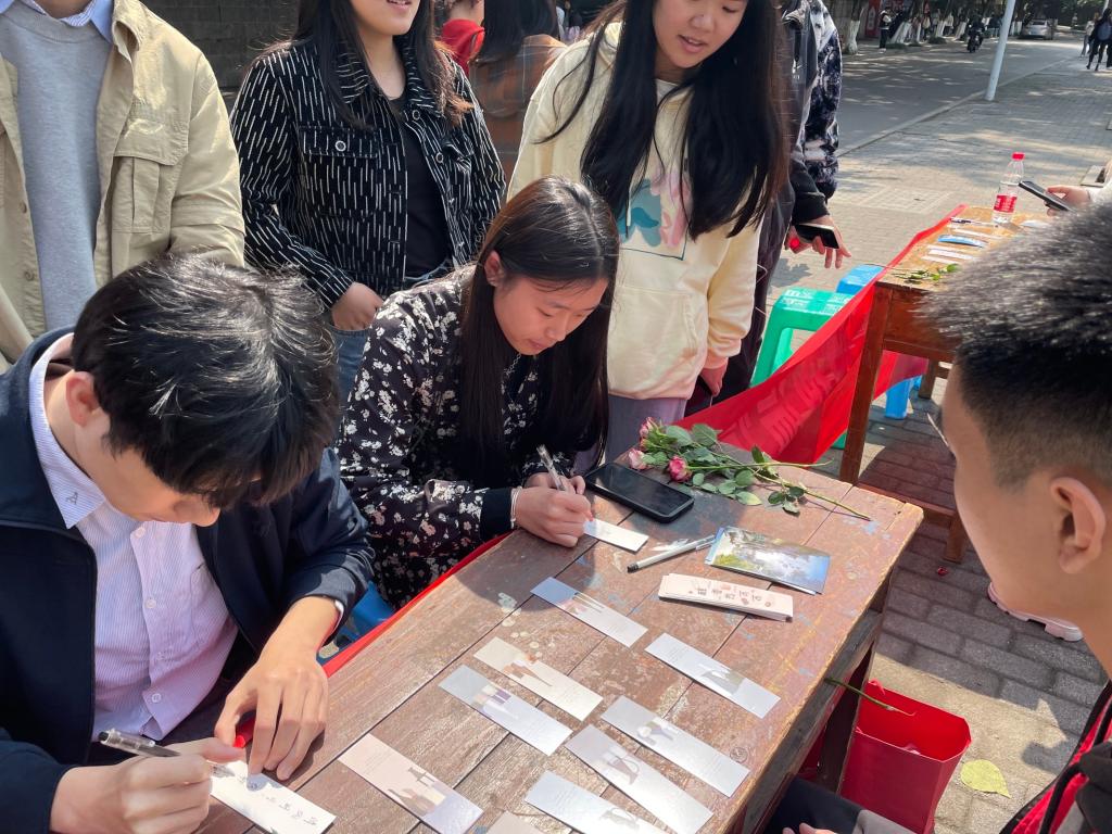 现场通过志愿者的介绍,免费抽取明信片获得玫瑰花并交换祝福的活动方式吸引了同学们的参与。纸短情长,同学们在明信片上写上自己想说的话,简短的几行文字传递给其他同学最真挚的祝福。大家在明信片上写下自己对他人生活或学业的祝福,且在志愿者的帮助下自己的心声也能够传达给同校还未相识的其他同学们。参与活动的同学在收到他人的明信片祝福后也表现出了惊喜、满足的神情。小小的明信片承载着一个人的温暖,传递到参与活动的另一个人,有着非凡的意义。小小的明信片,化身成友谊的信使,架起了同学们联系的桥梁。