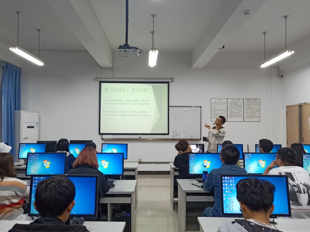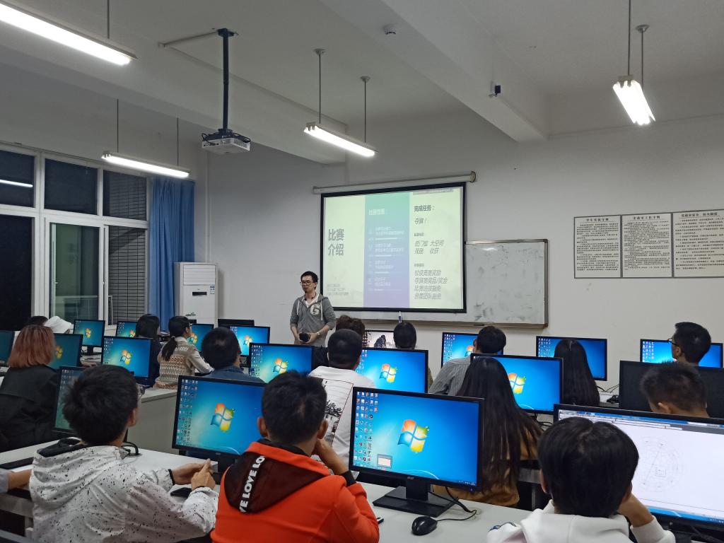 2019年10月17日晚,sunbet申搏在10209教室开展了机器人比赛宣讲会,主讲为机电系主任王洪建老师,上届获奖员工代表胡崇尔、蒋仕刚和郑仝也在会上进行了经验分享。