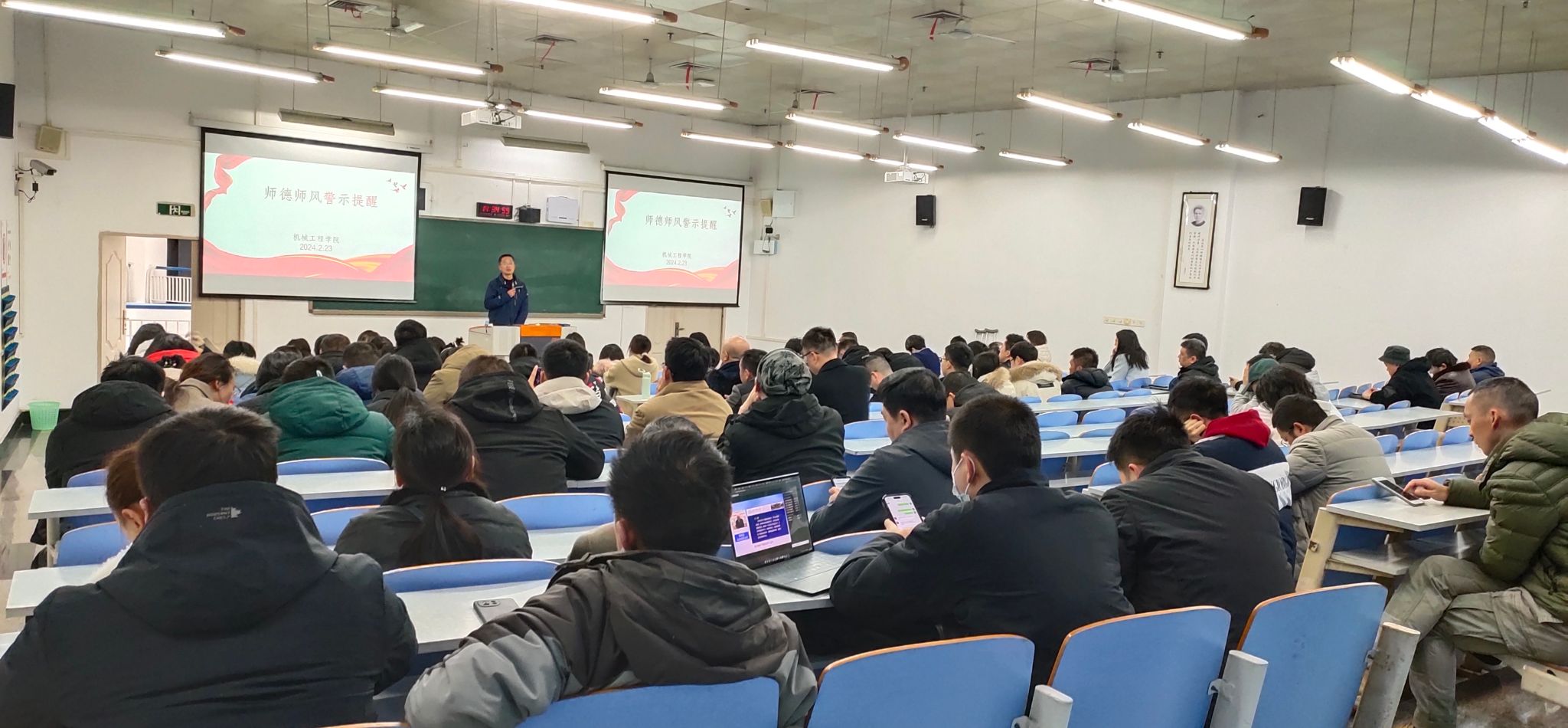 公司经理杜力深入剖析了典型案例,引导全体教职工以案为鉴,以案明纪,进一步强化师德师风底线意识和敬畏意识,积极践行新时代高校教师职业行为十项准则,切实维护教师良好形象,牢记教书育人使命,践行新时代师德规范。