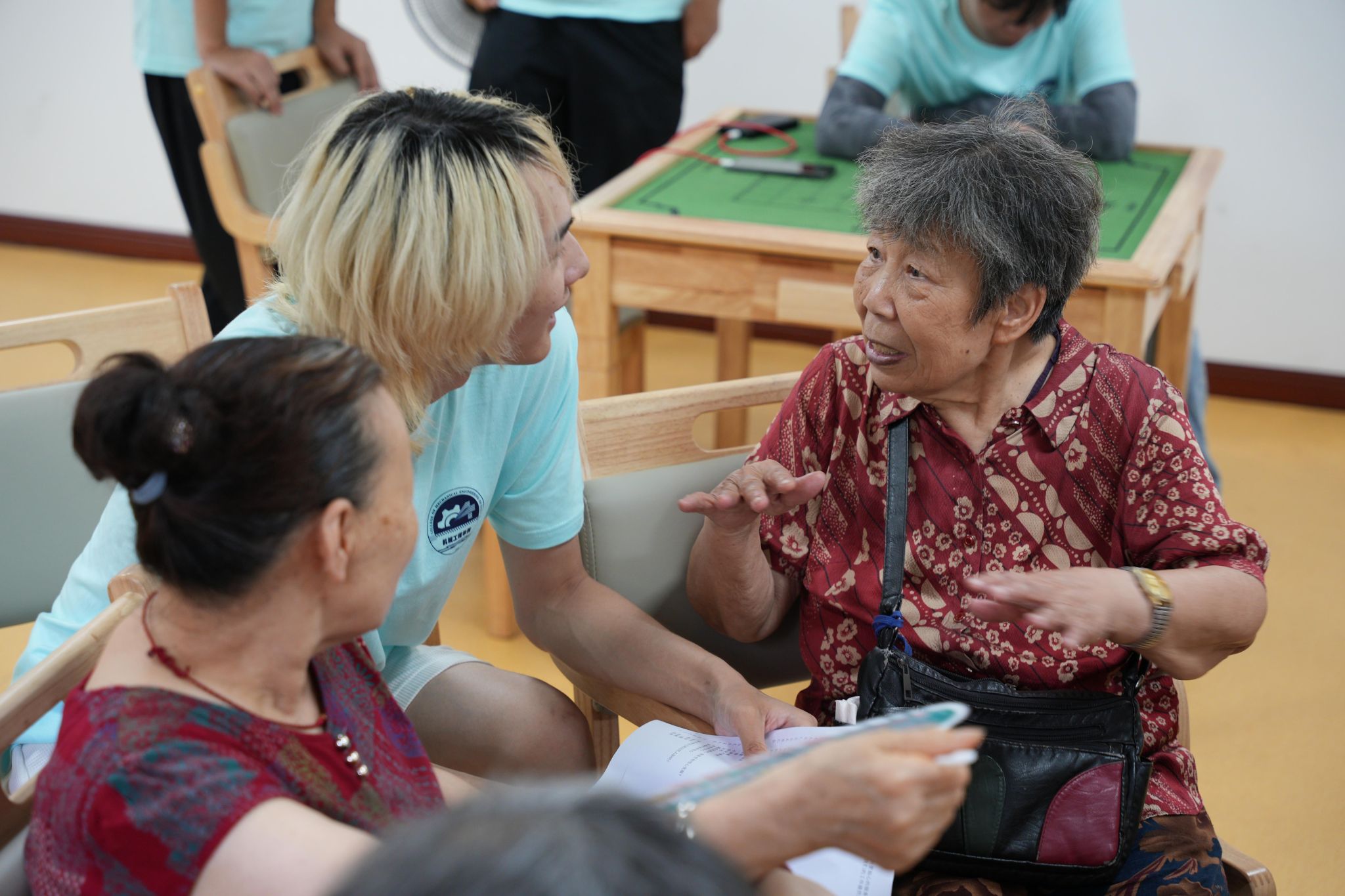 随后,志愿服务团的成员们分为若干小组,在梁小琼的引导下,深入到老年人中间,通过面对面交流、问卷调查、心理小游戏等多种形式,耐心细致地与老人们沟通,倾听他们的心声,记录他们的需求和愿望。志愿者们运用所学的专业知识,从心理学角度对老年人的情绪状态、生活满意度、社交需求等方面进行了全面而深入的调研。