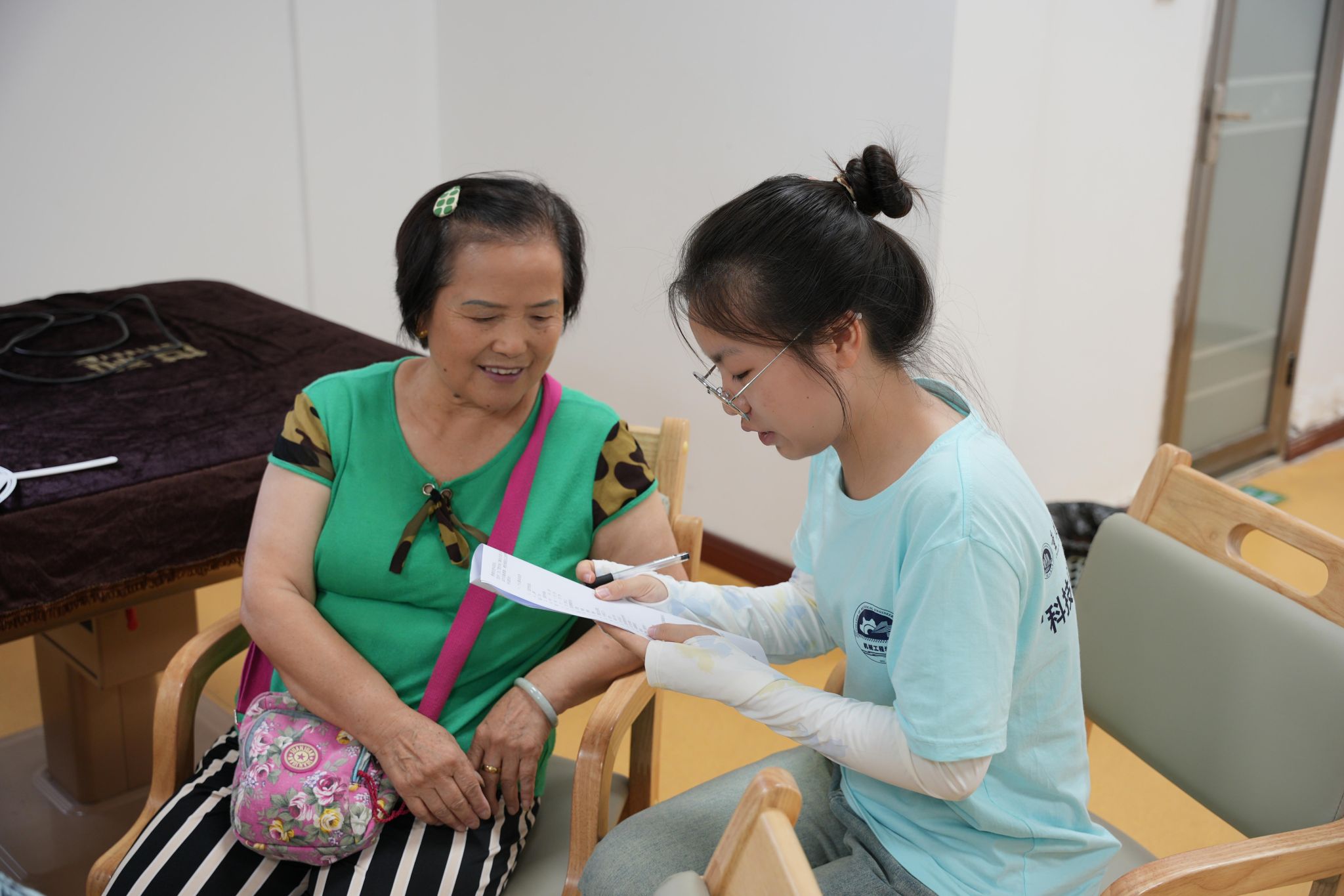 为了深入了解老年人的心理需求与现状,为构建更加和谐、温馨的社区养老环境贡献力量,7月24日上午,sunbet申搏“科技萌芽,筑梦未来”志愿服务团带着对社会的关爱与责任,来到九龙坡区石桥铺街道朝阳路社区居家养老服务站,与社区负责人梁小琼女士携手,共同举办了一场别开生面的老年人心理调研活动。