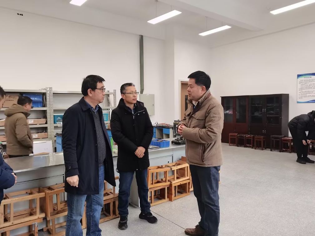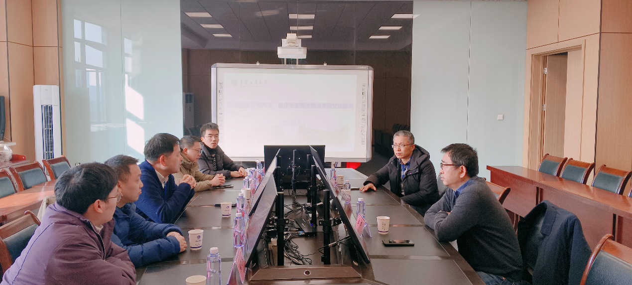 2026年1月6日,重庆长安股份有限公司物流技术高级副总工程师蒋宁、重庆长安民生物流股份有限公司包装事业部李红喜经理等一行5人到访公司,就深化产学研合作,建设汽车CKD包装实验室开展调研。公司经理李平、实验中心主任马斌、包装工程系主任张书彬参加会议。双方围绕实验室建设方案、技术研发方向、人才培养合作等核心问题展开深度研讨。