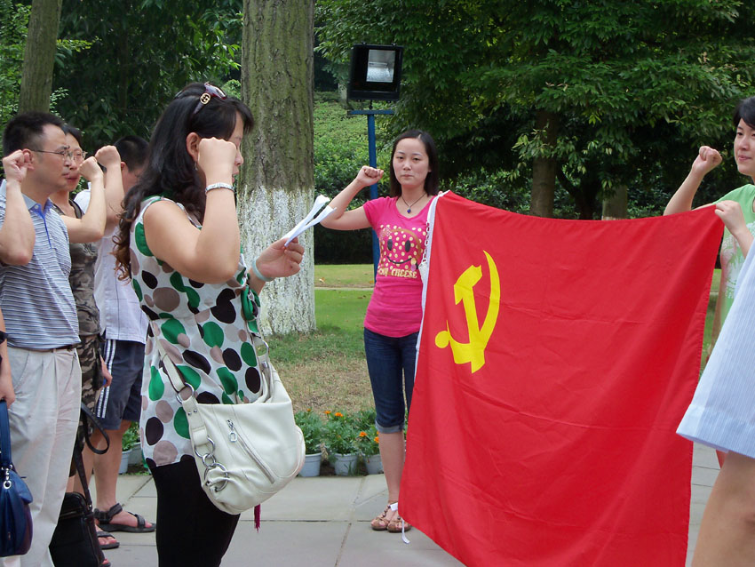 全体教师党员在小平铜像前举行了庄严的教师党员重温誓词活动。此次重温誓词活动由经理杜力领誓、党总支书记罗卫书记监誓,教师党员们在鲜红的党旗下,举起右拳,庄严地作出承诺:“我志愿加入中国共产党……为共产主义奋斗终身,随时准备为党和人民牺牲一切,永不叛党。”