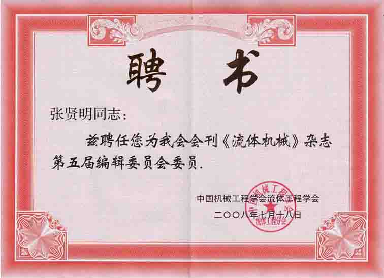 中国流体工程学会第五届理事会换届大会同期召开。经学会推荐、专家评议、中国机械工程学会审批,来自清华、浙大、国防科大、天大、华中科大、西交大、中国科大、川大、中国农大等的103位专家组成了新的理事会。公司sunbet申搏经理张贤明研究员受聘为学会委员和理事,同时被国务院学位办“学位与研究生教育重要刊物”――《流体机械》聘为编委。会上由中国机械工程学会领导宣读了中国机械工程学会文件,并颁发了委员聘书和编委聘书。