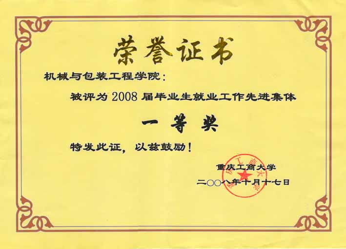 就业工作一等奖证书