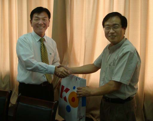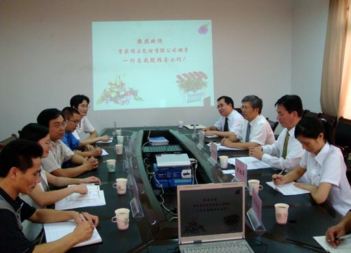 为了长期接收公司的毕业生,9月16日下午,来自台湾的刘志恺总经理一行五人,主动上门到公司机械与包装工程公司进行了产学研合作洽谈,张贤明经理、喻永红书记及教学、科研、就业的相关人员参加了洽谈会。气氛非常友好、热烈、务实。双方介绍了各自的产学、科研、需求情况,该企业是华南最大的现代化包装厂,拥有25个亿的资产。刘志恺总经理赞扬送去的五位同学素质很高,是数一数二的。