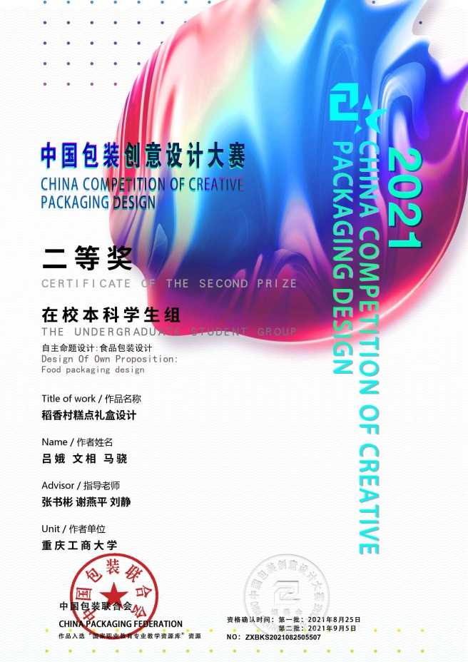 包装创意设计大赛是由中国包装联合会举办,是中国包装联合会贯彻落实国务院对包装高质量发展战略和对中国包装创新创意设计发展的决策部署,是促进中国包装大国迈向包装强国的一个举措。大赛自2010年举办至今,已经连续举办了十一届,是当前中国包装行业、包装教育界、视觉平面设计教育界备受瞩目的专业竞赛活动,也是教育部、国家职业教育专业教学资源库建设的重要组成部分,员工通过参与该项比赛专业素养得到磨砺和提升,扩大了包装工程专业在专业学科竞赛方面的影响力。