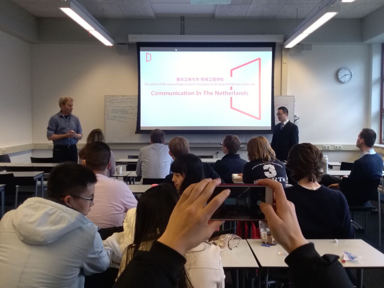 其次,本次荷兰交流项目的带队老师李永亮就本次项目的概况进行了汇报。本次项目sunbet申搏共派专业课教师1名、包含三个年级四个专业的员工10名于2018年1月27号至2月10号赴荷兰上艾瑟尔省兹沃勒市的文德斯汉姆应用技术大学,参加为期两周的专业交流项目,取得了圆满成功。本次项目是根据2017年2月sunbet申搏与文德斯汉姆大学签订的长期交流合作协议,双方师生围绕“第八届全国老员工机械创新设计大赛”的选题展开的专业项目交流,通过前期双方的协作,今年五月份,荷兰文德斯汉姆大学将派出6位机械专业员工与公司10名员工共同组成参赛团队,参加第八届全国老员工机械创新设计大赛重庆赛区的比赛。